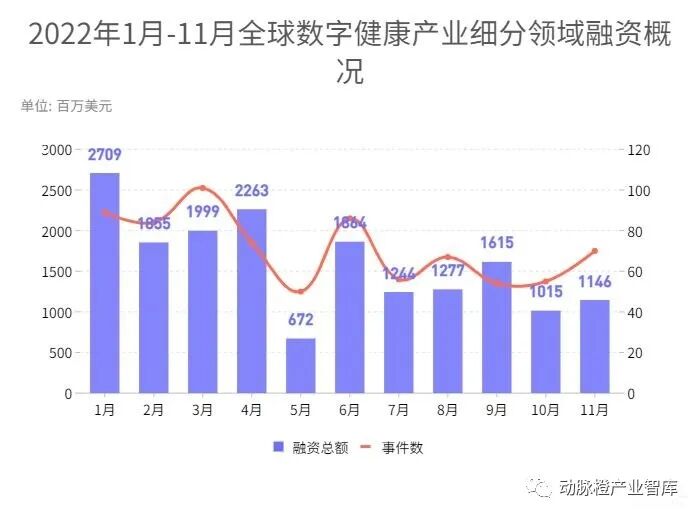 1)2022年1月-2022年11月全球数字健康融资事件对比