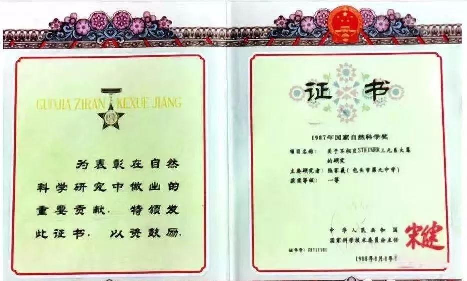 1987年,陆家羲的《不相交的斯坦纳三元系大集》研究成果,被国家科委评为国家自然科学一等奖。