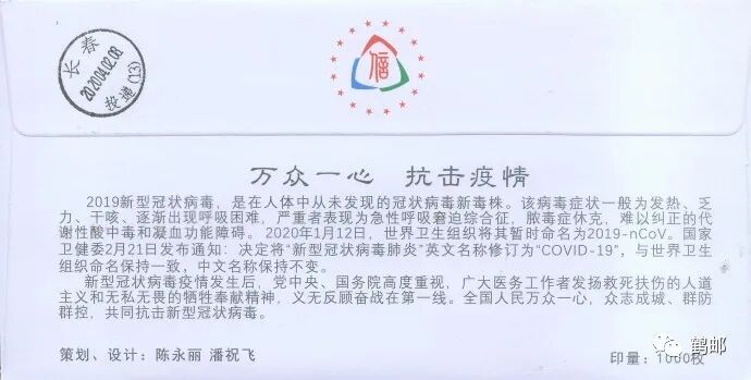 邢台的《全民抗疫共克时艰》邮资封