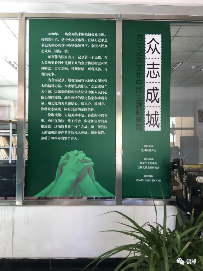 7月25日,一场以 “众志成城”为主题的小型集邮展览在长春市宽城区图书馆前厅开展。![]()