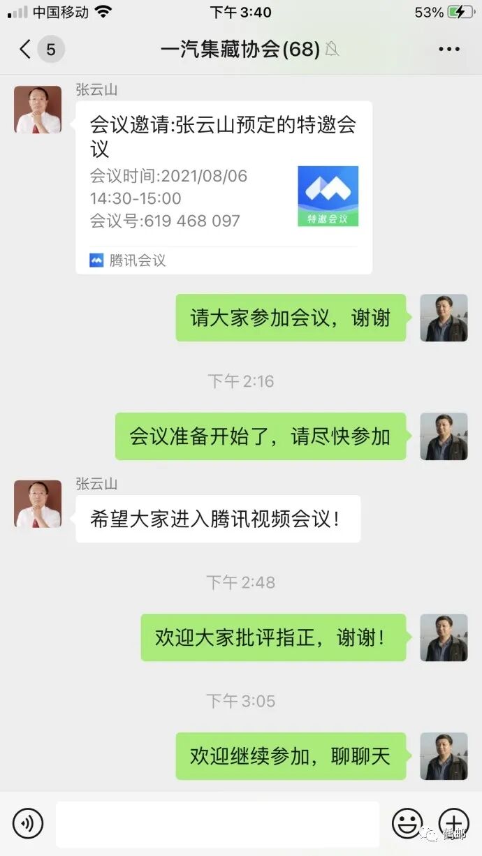 8月6日下午2点,一汽集邮协会因疫情原因改在“一汽集藏协会”微信群举行线上集邮日活动,采用腾讯视频方式。视频会议由常务副会长张云山主持。副秘书长赫建作《网络助力集邮记录邮事》专题讲座。以8种方法用电脑和网络集邮,记录邮事的做法和经验,以及3个方面的对比,交流体会和小结。![]()