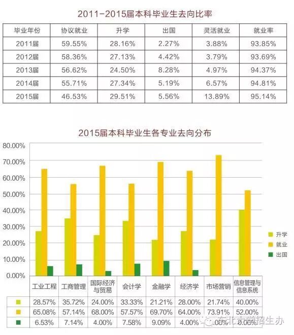 毕业生主要面向制造业和服务业,可从事生产计划、质量管理、人力资源管理、人机交互设计、用户体验等方面工作。大部分毕业生到世界500强和中国500强企业就业,近几年继续深造的学生比例达到30%,其中国内高校主要通过保送方式进入清华大学、浙江大学、南京大学、天津大学等高校。