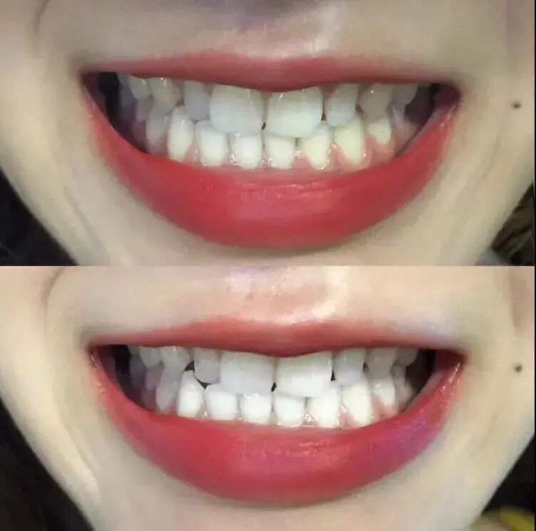牙齿黄黄的牙垢不见了。