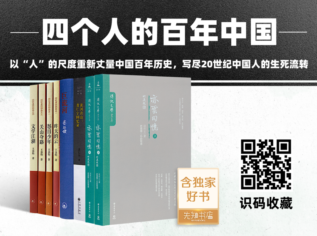 为此,先知书店再次诚荐“文学与历史:四个人的百年中国”。四位历史见证者的回忆录不仅内容真实,文笔也俱是出奇的好,文笔流畅如行云流水,读者可在畅快的阅读中体验近百年的中国历史。长按下图,识别图中的二维码,即可一键收藏(含独家好书):