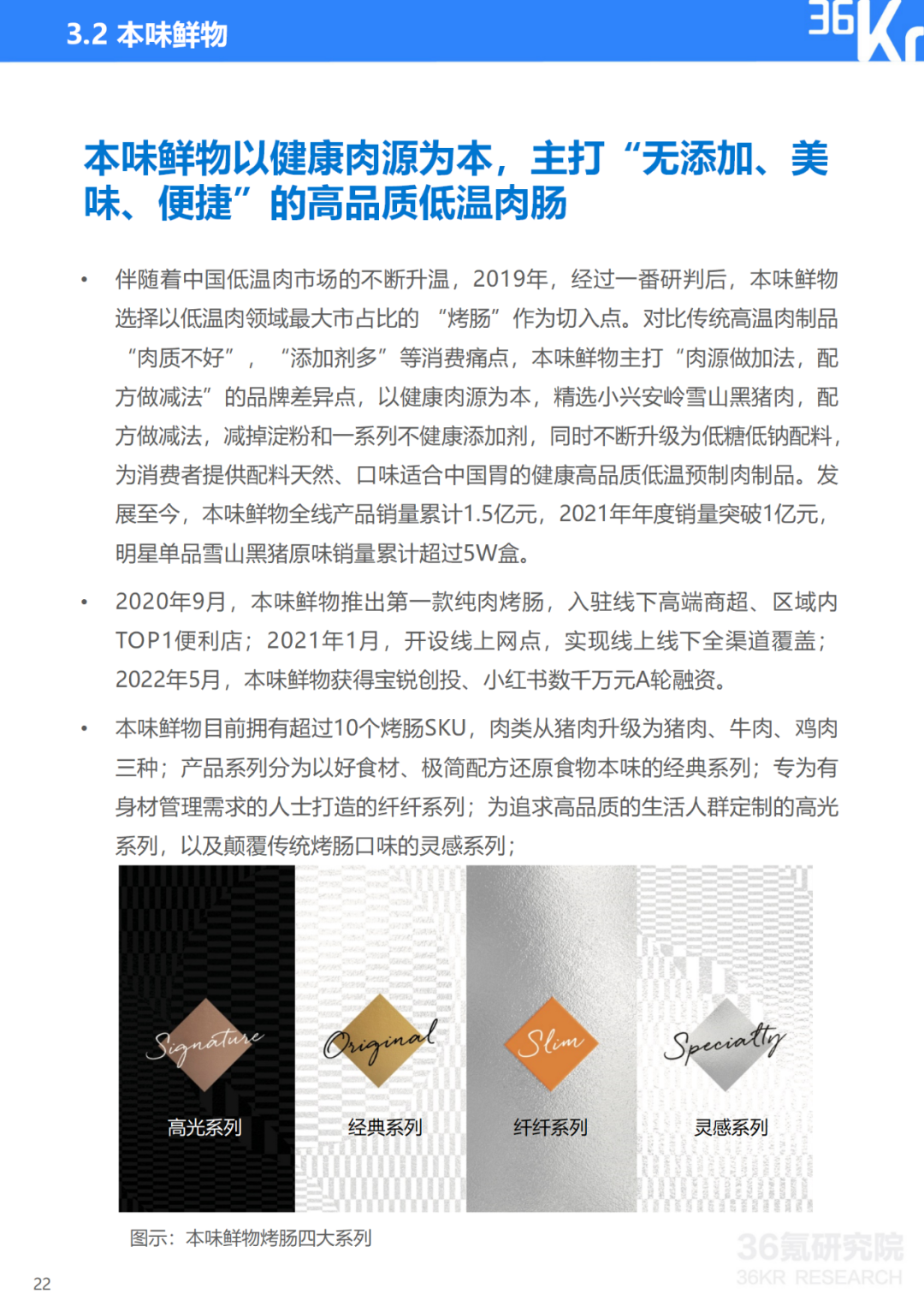 低温肉制品是指常压下通过蒸、煮、熏、烤等热加工过程,使肉制品的中心温度控制在68-72℃,并需在0-4℃低温环境下储存、运输、销售的一类肉制品,与高温肉制品相比,低温肉制品最大程度上保证了肉类的口感和营养成分。近年来,随着低温肉制品需求增长、冷链物流设施愈发完善,市场规模随之稳步提升,参与者逐年增加。从行业发展来看,未来行业集中度有望进一步提高,拥有自主供应链、研发配方,以及更懂年轻人的新锐低温肉品牌将更具市场竞争力。