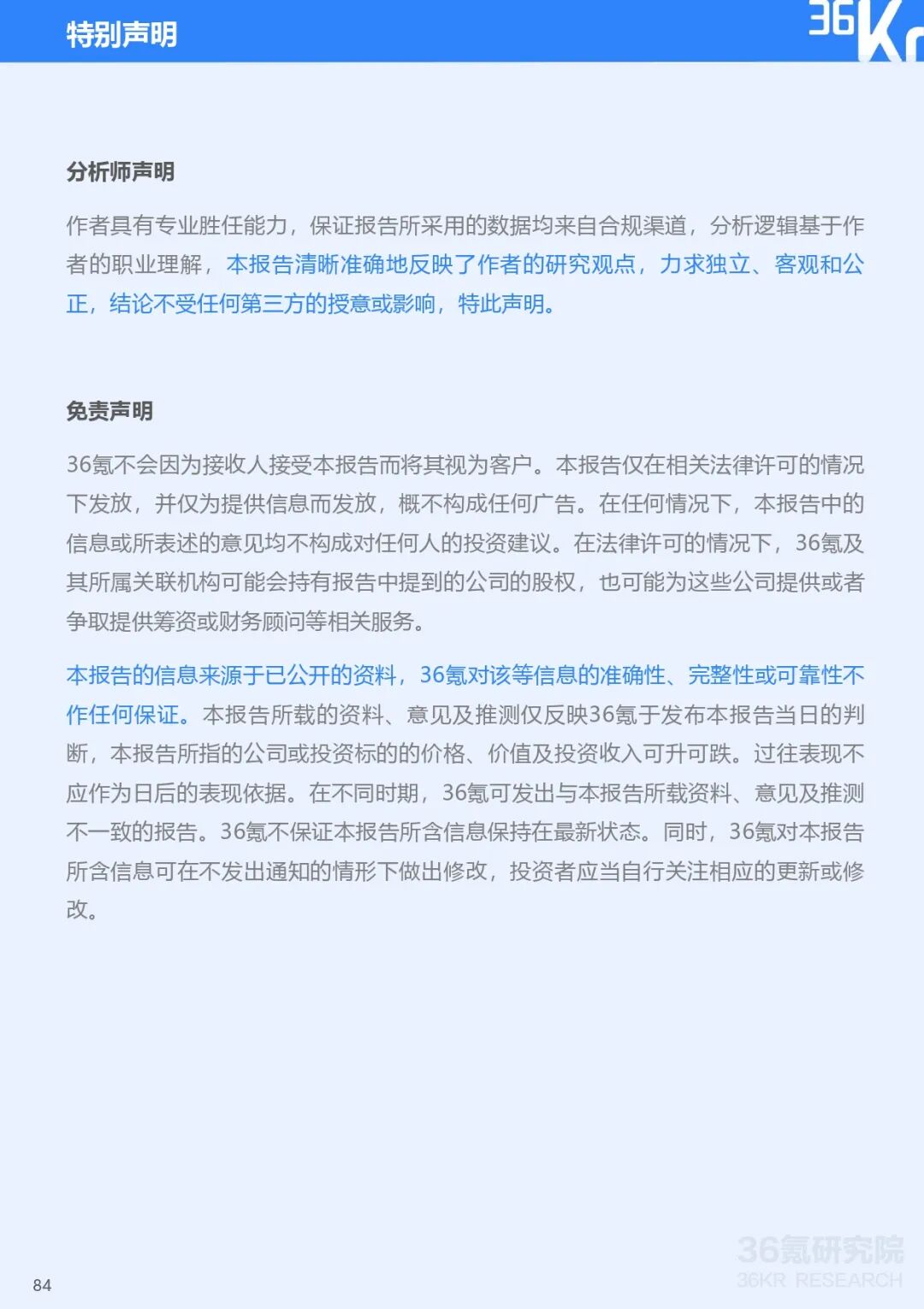 About Feature 36氪研究院根据行业发展、资本热度、政策导向等定期输出高质量研究报告,帮助政府、企业、投资机构等快速了解行业动态,把握发展机遇和明确发展方向。同时,研究院致力于为全国各级政府、企业、VC/PE机构、孵化器/产业园区等提供专业定制化咨询服务。