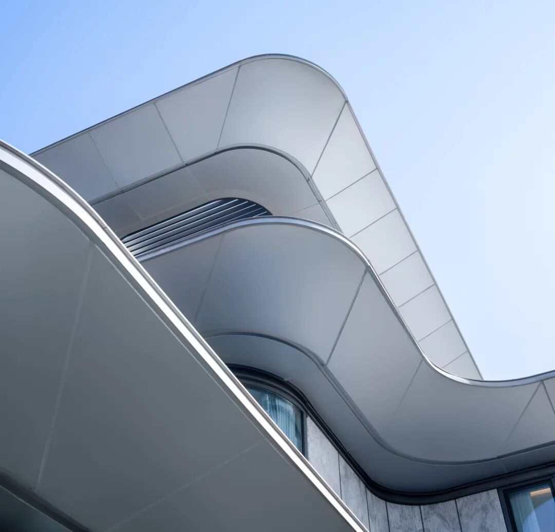 流动柔美的原则不仅仅被应用在建筑造型与空间营造中,在室内与景观设计中同样得到贯彻,涟漪的元素被有趣的复用。