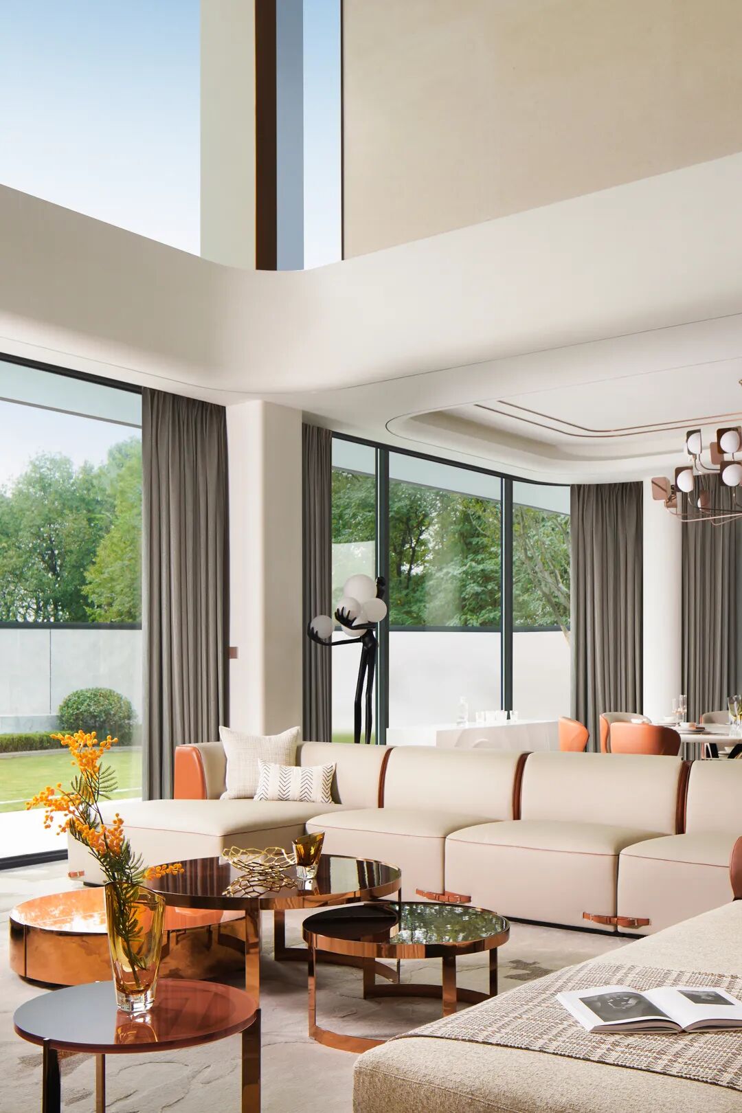 烟波涟漪将古城绍兴的文化、自然与现代风格融合起来,展现出生态,轻盈,舒适的生活方式,打破了人们对于“奢华”厚重的别墅产品的刻板印象,为高端居住体验做出了新的探索。
