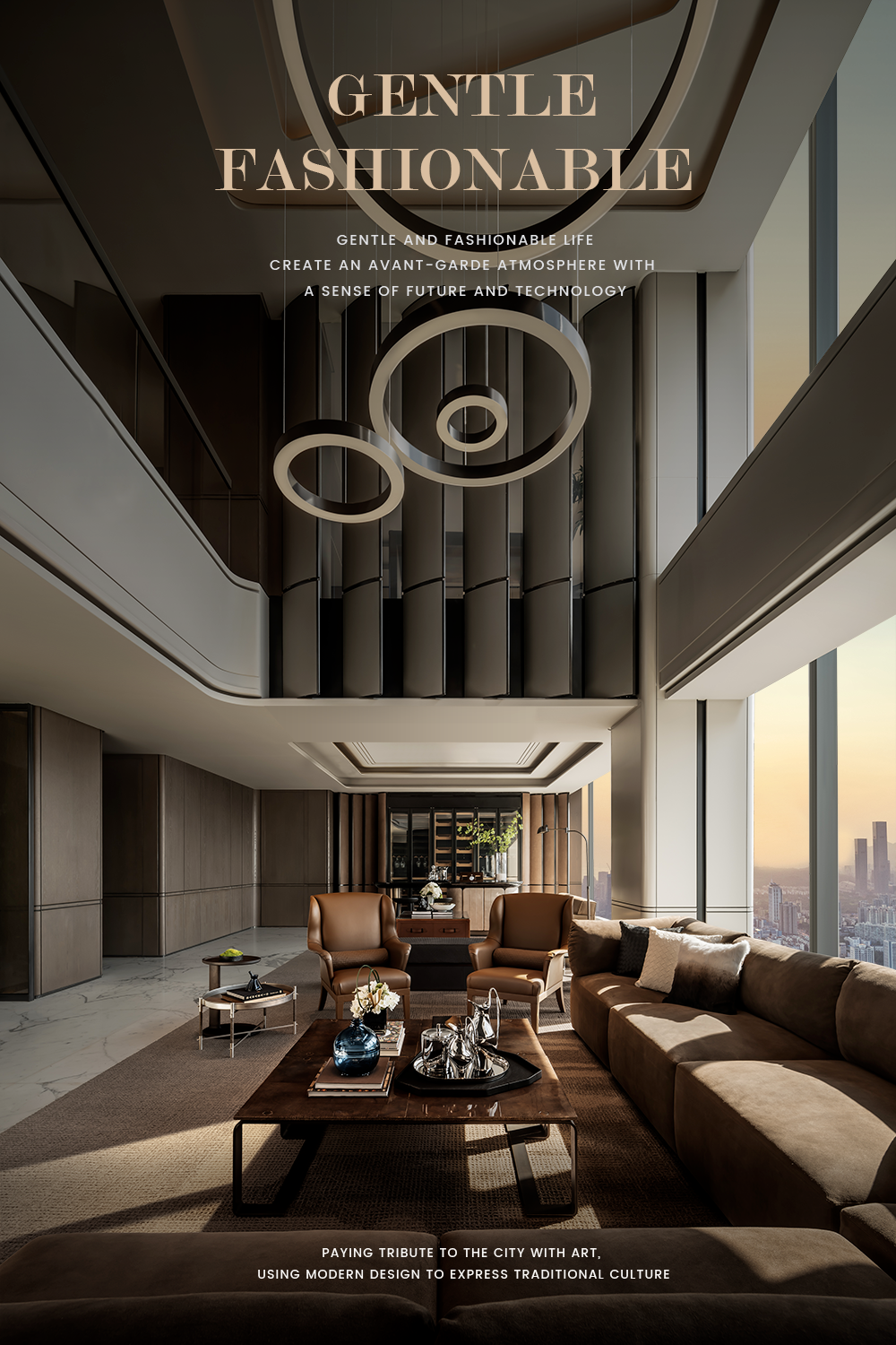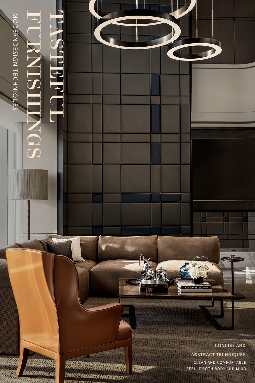 明亮的光线、优雅的色彩、温暖的木色,构成了起居室的主调,共同演绎着这里的低调与奢华。高端住宅的气质和灵魂,不仅要拥有生活方式的内涵,更要折射出文化的光辉。独特的材质和灵活开放的空间,这里有旋律、有诗意、有优雅的气质,妙不可言。