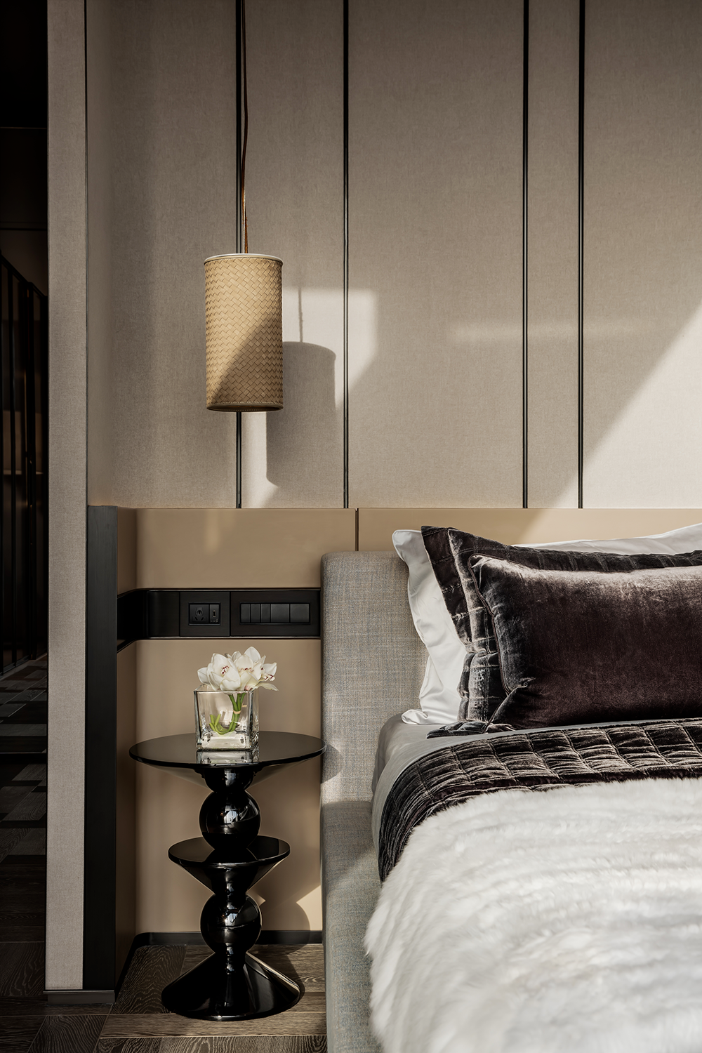 为了达致统一的视觉效果,贯通室内的灯具使用了一致的Bottega Veneta编织灯罩设计。质感的器具甚至是从各个方向洒进阳光般的惬意,这是与高端相匹配的生活质地。