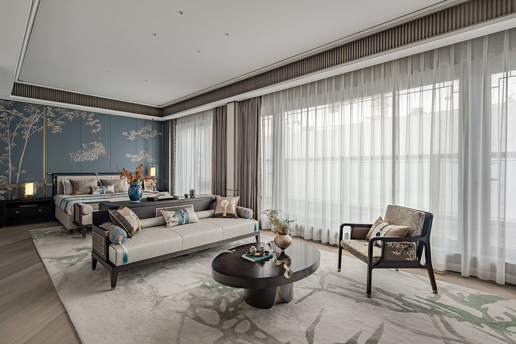 寝居空间不仅考虑视觉触达的感受;亦将东方情致经材质与工艺创新,渗透缔造空间同人的紧密联结中。