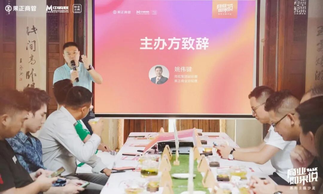随后,岗宏集团副总裁、果正商业总经理姚伟键发表了致辞,他指出,「商业如果说」系列主题沙龙的推出,正是践行果正商业使命,以探索新型商业模式为切入点,与业内伙伴分享行业发展新机遇,探索行业发展新趋势,共谱行业发展新篇章。