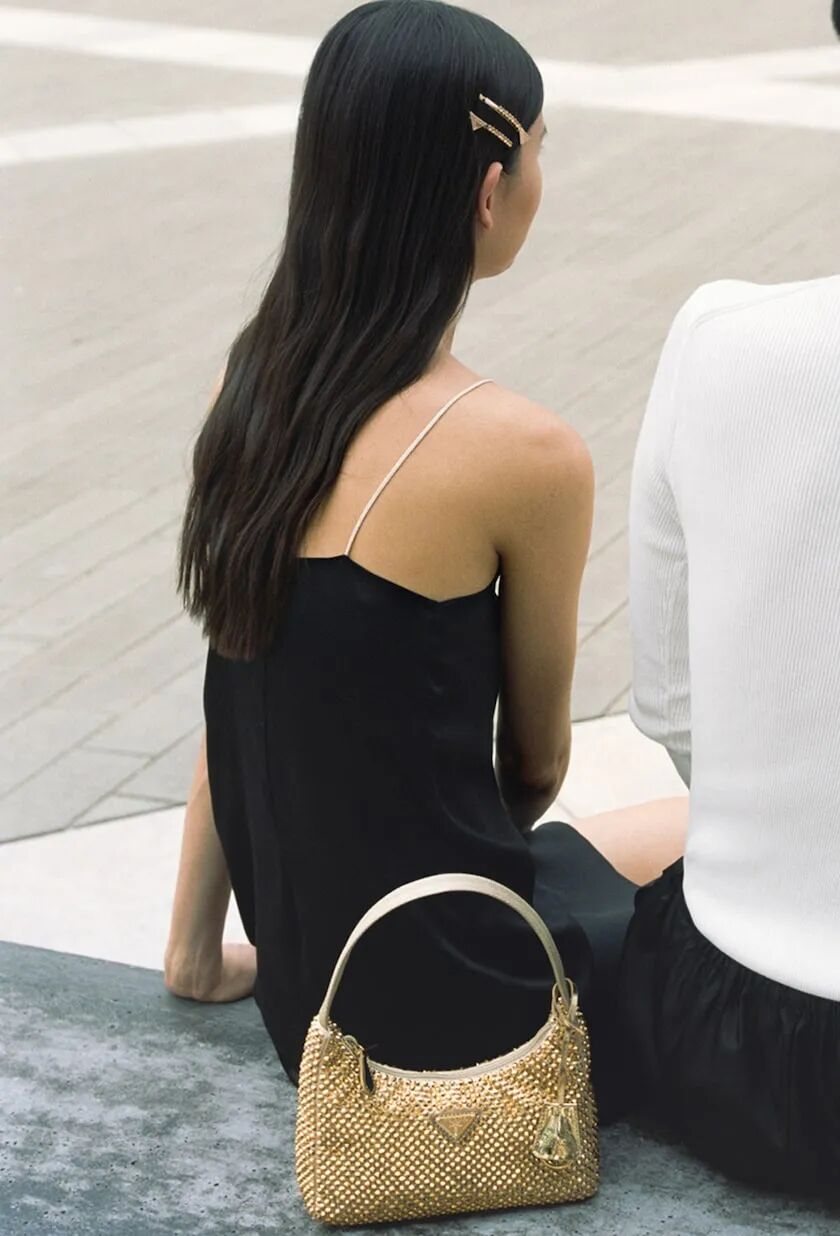一年一度的七夕即将来临,PRADA普拉达2022七夕限定系列以“金色”为主旋律,不管是在绸缎面料上铺陈闪烁的金色水钻,还是将标志性 Saffiano 纹理皮革渲染成金色调,尽显“闪闪惹人爱”的模样。