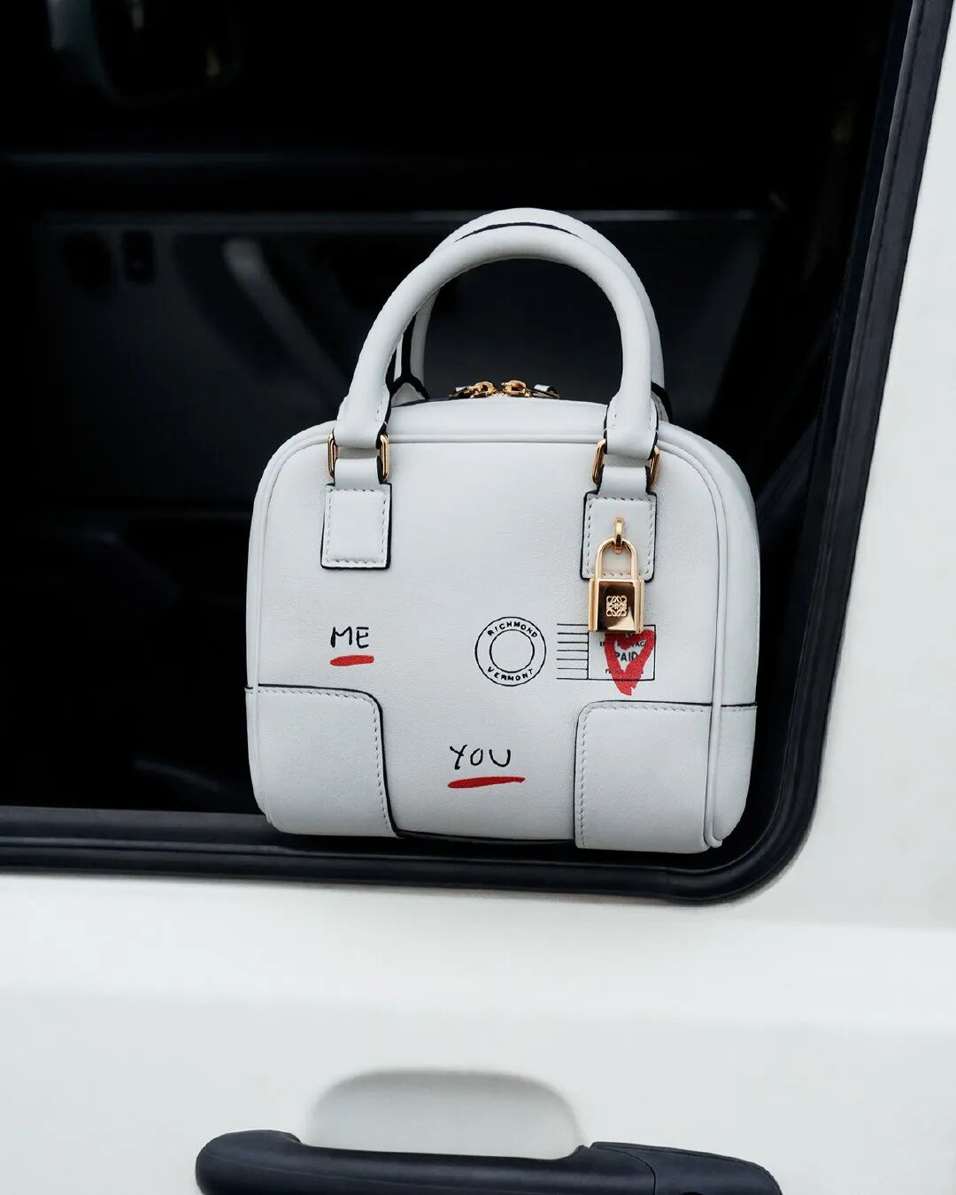 LOEWE罗意威七夕特别限定系列,从美国艺术家、诗人Joe Brainard的作品中撷取灵感,将其代表性情话“I remain your perfect match”化作系列的点睛妙笔,将温暖的爱意点缀在手袋及成衣之上。