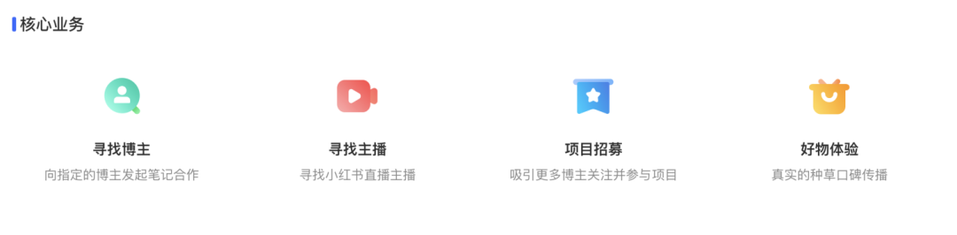 新平台上线后从原来的笔记合作拓展到了现在四大核心营销业务: