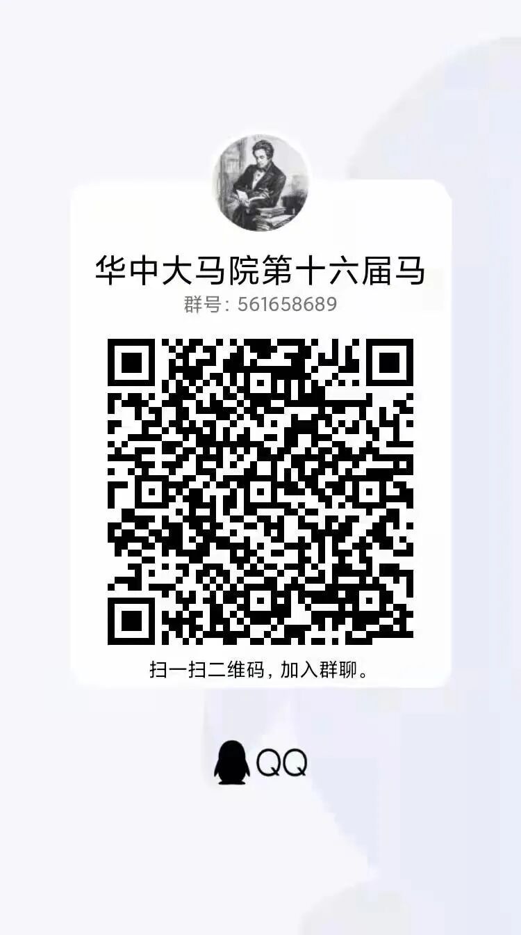 本次活动的最终解释权归华中科技大学马克思主义学院所有,其他未尽事宜,欢迎扫描下方二维码加入华中大马院第十六届马克思主义青年论坛官方QQ群561658689 咨询。