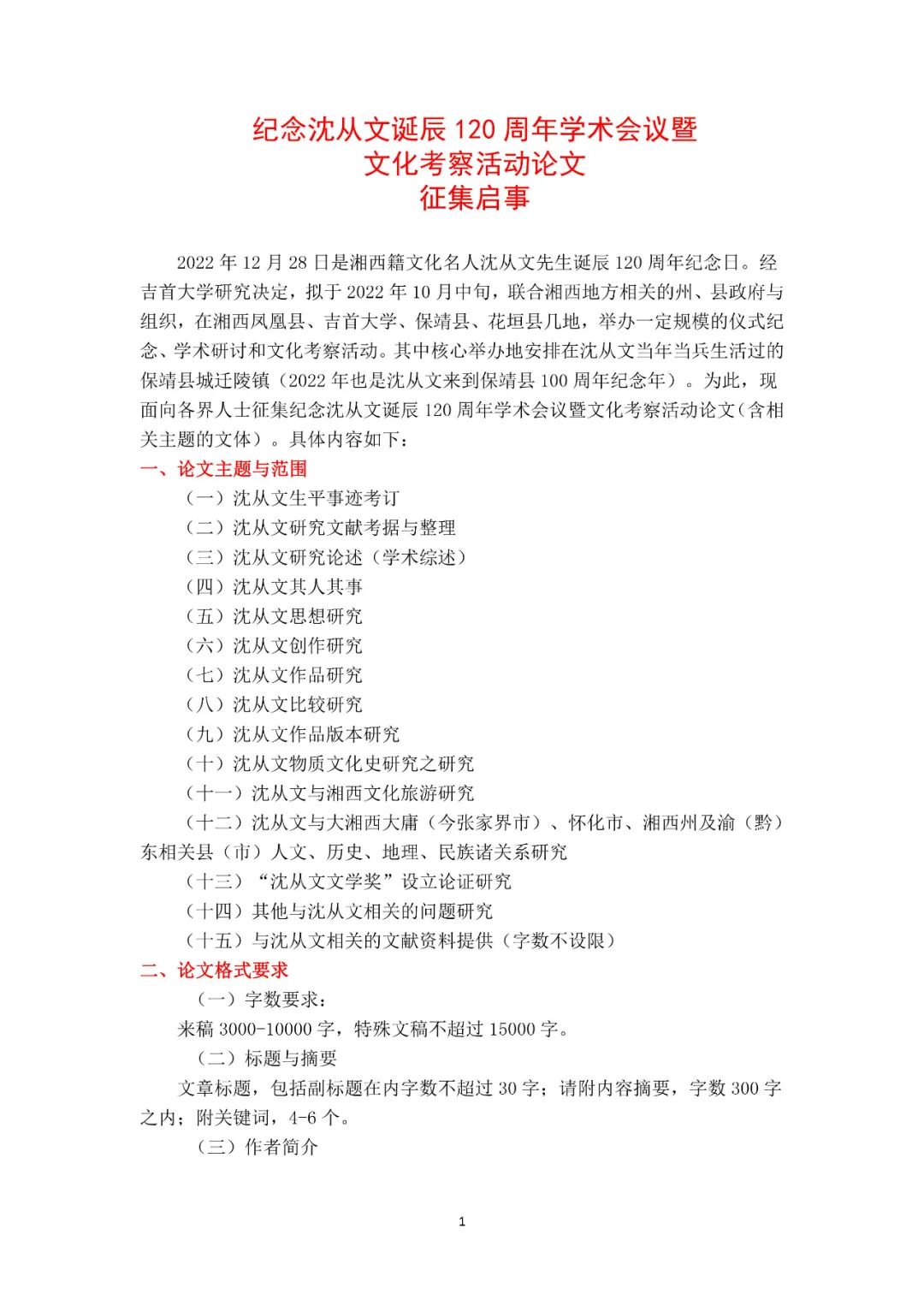 【征文】纪念沈从文诞辰120周年学术会议暨文化考察活动