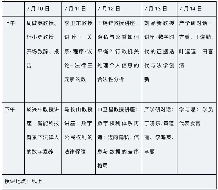 注:因疫情防控原因,课表上的时间安排可能有微调,以最终确定的暑期学校议程为准。