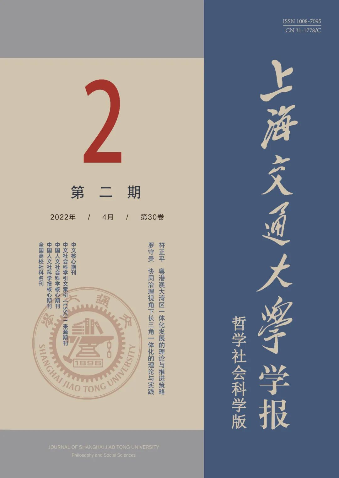 《上海交通大学学报(哲学社会科学版)》是全国中文核心期刊、 中国人文社会科学核心期刊、 中文社会科学引文索引(CSSCI)来源期刊。本刊重视学术研究论文的综合性、创新性、理论性、政策性,尤其欢迎体现新思想、新方法的跨学科研究成果。