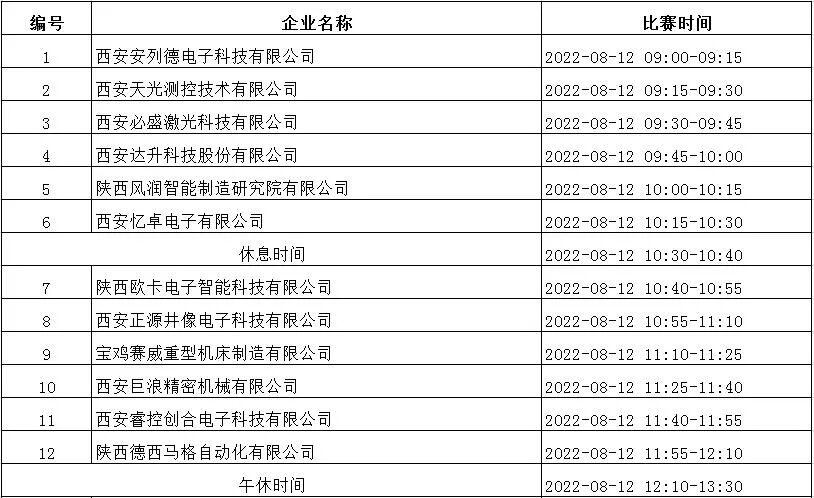 现将第十一届中国创新创业大赛(陕西赛区)暨第二届陕西秦创原科技创新创业大赛决赛赛程安排通知如下,请各参赛企业参照决赛赛程安排表,合理安排时间,提前到场准备。