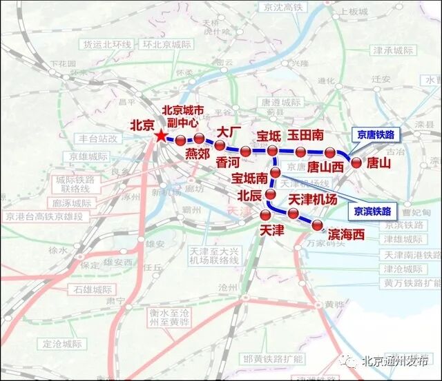 京唐城际铁路是京津冀地区城际轨道交通网的骨干线路,将以城际客流为主、同时承担部分中长途跨线客流运输功能的高速铁路。