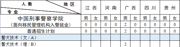 新疆计划中含新疆协作计划转入 25 人。其中:男生 22 人,即治安学(理)2 人、侦查学(文)1 人、侦查学(理)8人、禁毒学(理)3人、警犬技术(文)1人、警犬技术(理)2人、经济犯罪侦查(理)5 人;女生 3 人,即侦查学(文)1 人、侦查学(理)1 人、经济犯罪侦查(理)1 人。
