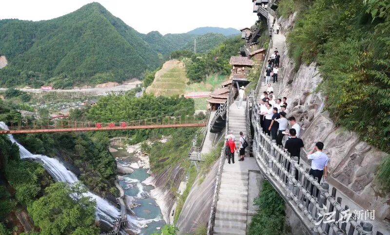 深沟峡谷、飞流瀑布、悬崖峭壁、古朴民居……广信区望仙谷以“十年磨一剑”的精雕细琢实现了从废弃矿山到国家4A级旅游景区的蝶变,更是以独特韵味和优美生态吸引着八方游客,成为了网红打卡地。易炼红沿着游步道拾阶而上,边走边看、边走边问,详细了解景区规划布局、生态保护、民宿设施、业态运营、游客接待等情况,要求全力打通“两山”转换通道,既要保护绿水青山,也要提升生态价值,坚持高标准高质量打造旅游景区,进一步优化服务、做响品牌,努力塑造发展新优势、培育发展新动能、激发发展新活力。易炼红指出,