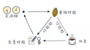 和番茄工作法一样,单核工作法也采取将时间分段的理念,但与之不同的是,单核工作法并不限定每次工作的时长,而是取决于全景时段。