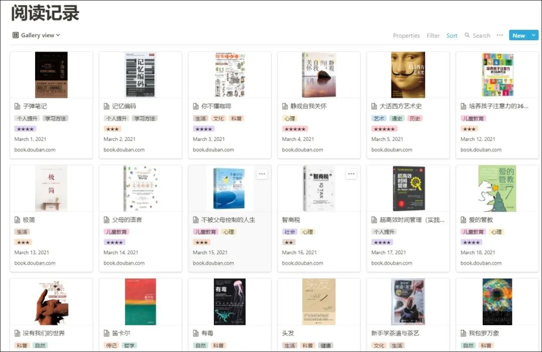 借力于Notion所拥有的数据库,单条笔记,你可以通过各种方式来呈现结构化的内容。
