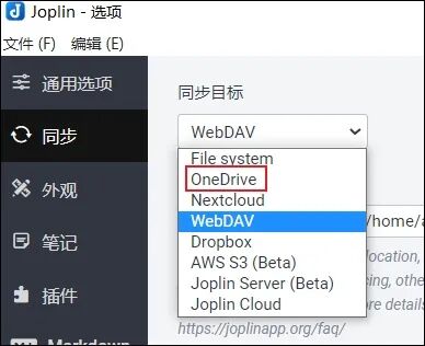 Joplin支持使用微软OneDrive进行同步,而OnDrive,为每个用户提供了5GB的免费空间。