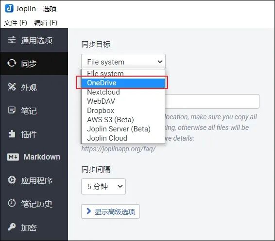 多种数据同步服务。Joplin提供了多种第三方数据同步服务,你可以按自己的需要选择。