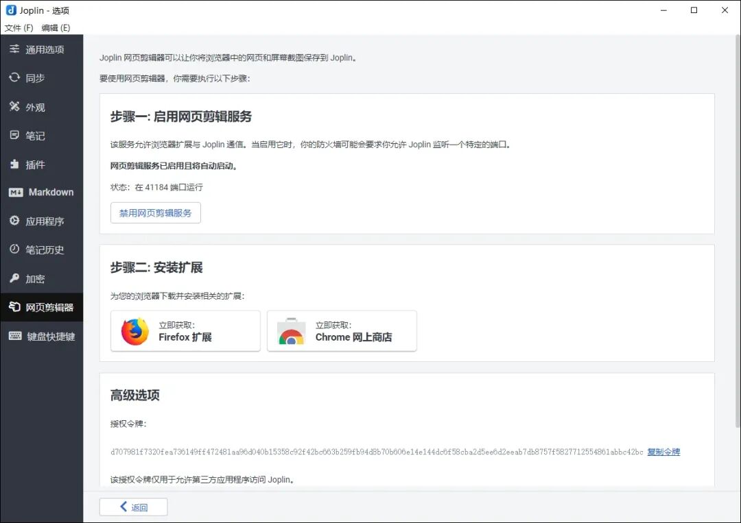 值得说明的是,要使用Joplin的网页剪辑功能,你必须在电脑上打开Joplin软件,否则是不能剪辑的。