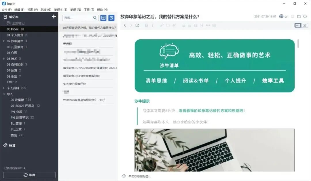 第二件事,是在去年,我将资料收集的工具,从印象笔记迁移到免费开源的Joplin。