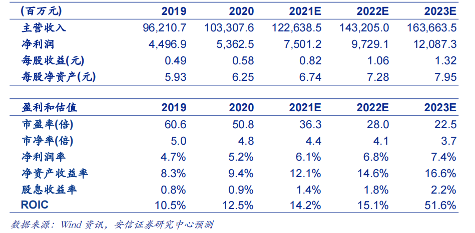 国内乘用车行业进入换购周期,电动化智能化高端化叠加新品周期,公司有望实现首换购两端开花,全球化战略布局扩容海外市场,皮卡解禁利好政策下,皮卡乘用化高端化电动化趋势释放增量。我们预计公司2021年-2023年的收入分别为1226.39、1432.05、1636.63亿元,归母净利润分别为75.01、97.29、120.87亿元,维持买入-A 的投资评级。
