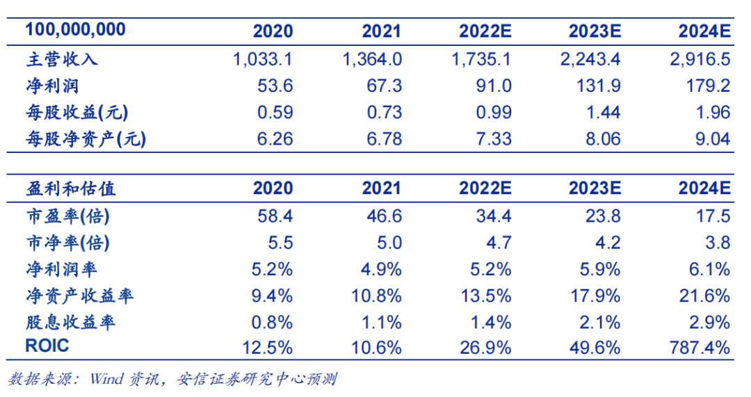 维持“买入-A”评级。我们预计公司2022-2024年归母净利润分别为91.0、131.9、179.2亿元,对应当前市值,PE分别为34.4、23.8和17.5倍,维持“买入-A”评级,6个月目标价45.5元/股。