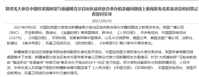据媒体10日消息,一篇有关于 “中国将向阿富汗派兵?中方回应” 的报道在网上引发了众多网友的关注与激烈讨论。据中国驻英国大使馆网站10日消息,中国驻英国大使馆与新疆维吾尔自治区政府联合举办涉疆问题9日举办线上新闻发布会,大使郑泽光回答了就中国是否会向阿富汗派兵,以及阿富汗局势对新疆影响等问题。