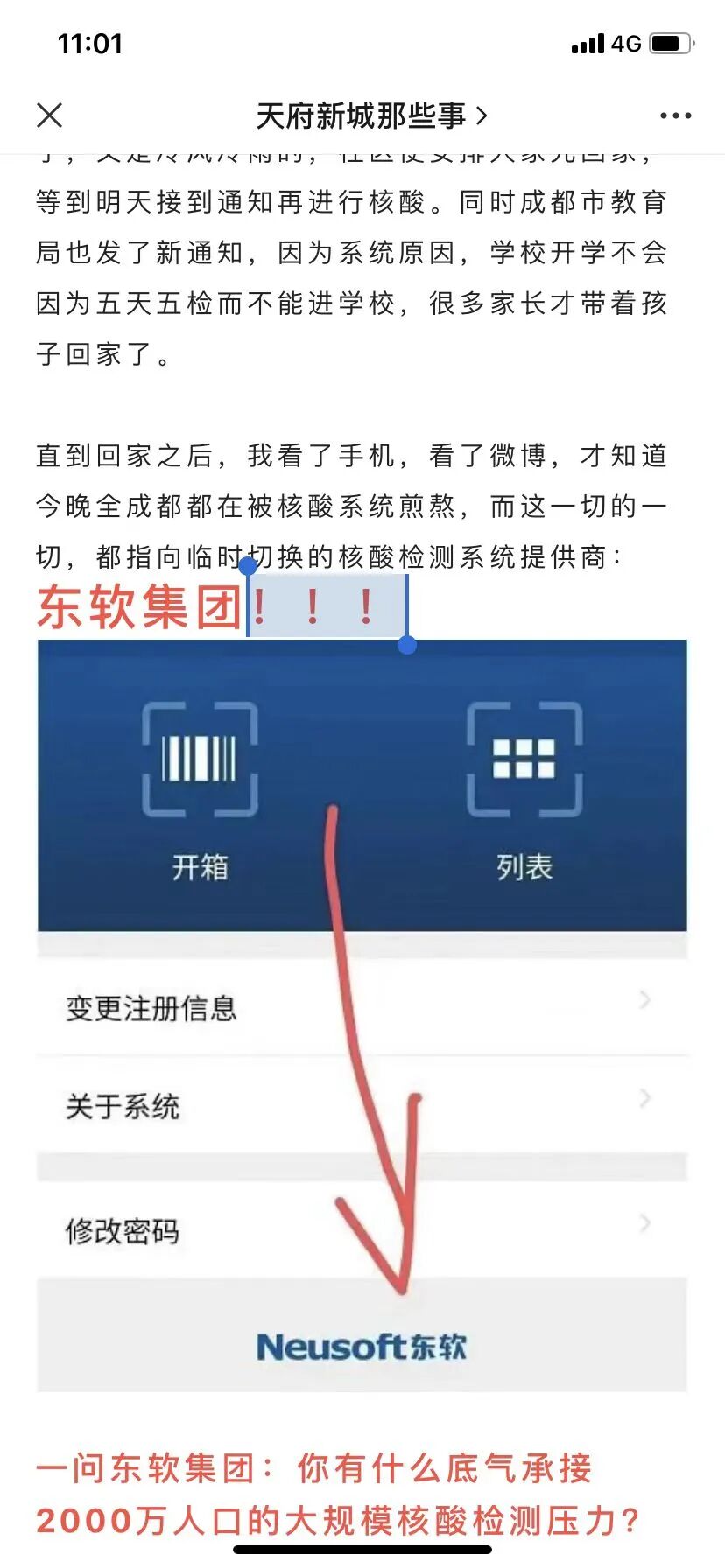 有证据链指向软件供应商东软,也有人呼吁更换系统。这事更换系列也要经过相关的准备和压力测试等。期望相关软件厂商能尽快完成应急。今天早上 K sir也加入了志愿者的行列。今天早点开始核酸检测,主要是让昨天没有检测的完成检测。
