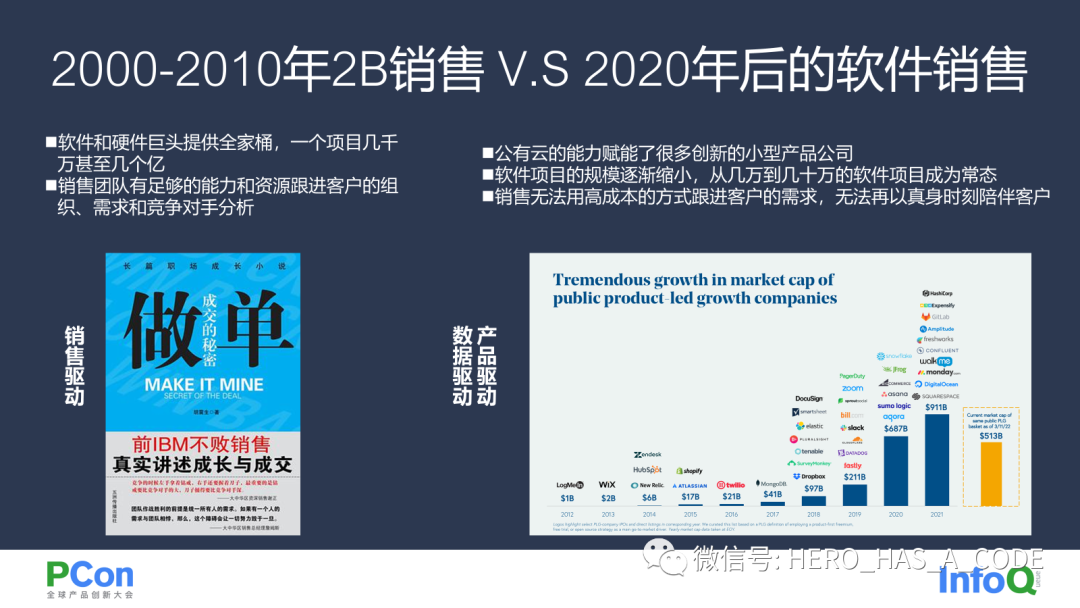 今年8月份参加了Infoq组织的PCon活动并做了一次关于SaaS的分享,今年的感觉是有关ToB的产品分享开始多了起来。这个可能跟ToC的互联网红利周期变化有关系,20-21年很多SaaS企业的估值非常不错,吸引了很多优秀的ToC的互联网产品经理来做ToB的企业服务产品了。