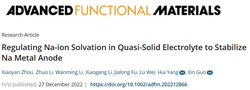 近期,华中科技大学郭新教授、杨辉教授在准固体聚合物电解质稳定钠金属负极方面取得新进展,探索了准固体聚合物电解质中丙烯酸酯衍生聚合物对Na+配位结构、沉积行为以及对钠金属电池性能的影响。相关研究成果发表以题“Regulating Na-ion Solvation in Quasi-Solid Electrolyte to Stabilize Na Metal Anode”发表在国际知名期刊Advanced Functional Materials上。华中科技大学周晓燕博士、李卓博士为共同第一作者。此研究得到国家自然科学基金等资助和支持