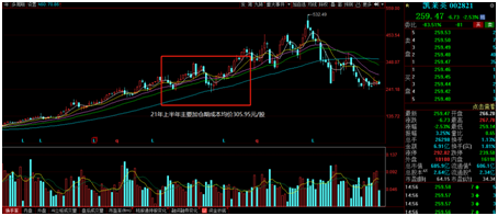 相比于药明康德与爱尔眼科,中欧医疗健康在增持凯莱英方面较为保守,仅在2021年三季度增持300万股,此后两个季度并未有大幅增持行为,得益于布局较早,扣除此前两轮650万分红后相关持仓成本仅在30亿元水平,对比一季度末44亿市值尚有盈余。不过,年内第二季度,凯莱英股价下滑明显,以6月22日259.47元/股计算,若中欧医疗健康4、5月未发生减持,则持仓股31.10亿市值已逼近成本线。