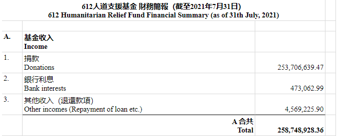 根据此前“612基金”公布的财务简报,截至7月31日,其总收入高达2.58亿港元,总支出也高达2.56亿港元,基金可动用结余约185.9万港元。