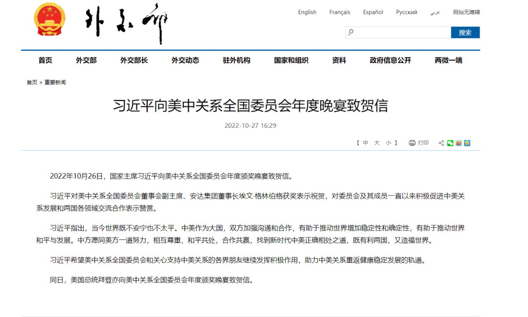 正是在这一大背景下,中美元首同时向美中关系全国委员会致贺信,可谓非同寻常,贺信释放的关键信号,格外受到关注。