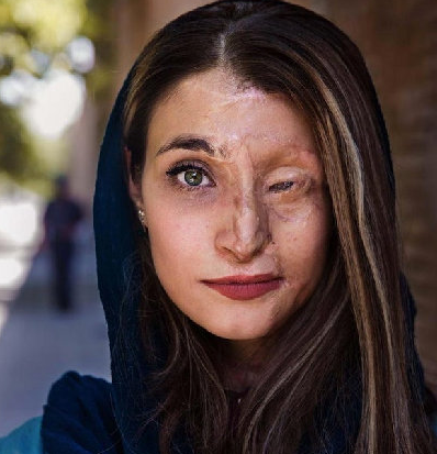 照片中的女人,叫Marzieh,她的一边脸五官精致,而另一边已然毁容。
