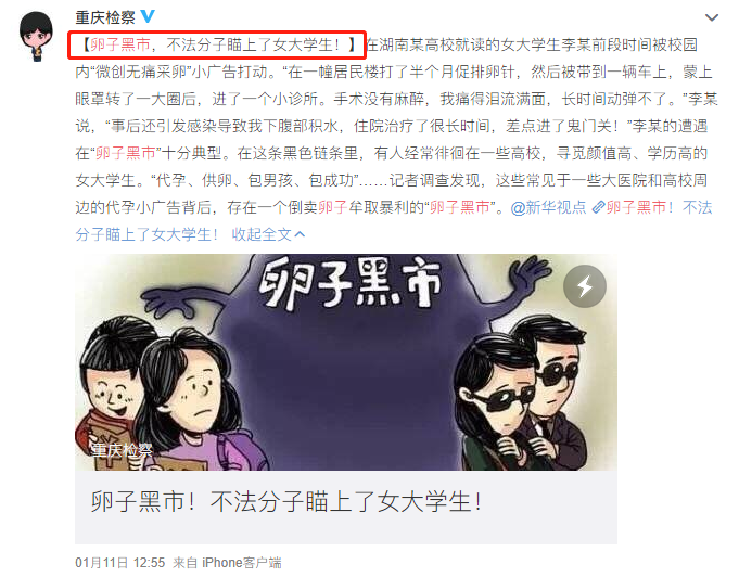 “经过多地调查发现,校园缺教材,家长难开口,儿童性教育普及有点难。”是的,家长们都觉得性教育是不必要的,他们像躲瘟神一样,让孩子躲着性知识。孩子自己学到的性知识,很可能是非法渠道上看到的,往往最容易被骗取身体的私密。比如网上,现在有一些交友app,就是会明码标价诱骗未成年人,进行情色交易;又比如现实生活中,有些招贴的广告,伪装成正规医院,诱骗未成年女孩去卖卵,告诉她们:而这些女孩子真的通过广告找上门之后,他们还会一步步告诉你:“你的卵子不卖也是浪费,还不如卖了,既能赚钱,还是做慈善。”但是,当女孩答应后,才发现事情根本不是那么一回事。取卵痛不欲生,因为这种黑心医院根本不会给你打麻醉。而你,只能被绑在手术台上,任人取走自己的数十颗卵子。要知道,女性一个月只排出一次卵子,一辈子只有400个左右的成熟卵子,可谓是用一个少一个!正是因为如此珍贵,所以才会有黑心商家以此牟利,他们瞄中的整整是涉世未深,连性知识都不懂的女学生!“把生育当作性的目的,把无知当纯洁;把愚昧当德行,把偏见当原则。“![]()