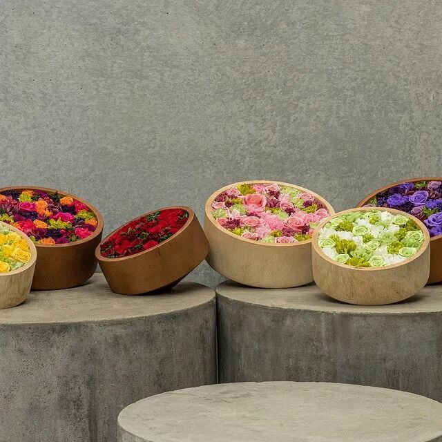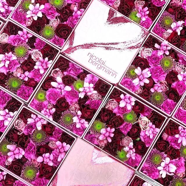 说起来,这个想法的诞生也是有一番小插曲呢。早在2001年伯格曼开店之初,他收到一位做公关客人的特殊要求——她要求伯格曼在一个狭窄的空间内紧紧堆放600朵鲜花礼物,以进行新闻发布会。伯格曼绞尽脑汁,赶了两天工,最终用鲜花盒子的形式完成了这个作品。然而那位女士却只是称赞了他的创意,然后告诉自己已经安排了别人来做。伯格曼当时备受打击,这是他接到过最大的一笔订单,为了达到满意的效果,还超出了预算,如此努力却全都付诸东流。不过他并没有被这些盒子「困」住太久。作为一种新颖的鲜花展示方式,这些盒子在21世纪初备受欢迎,很多花店都引入了这种做法。![]()