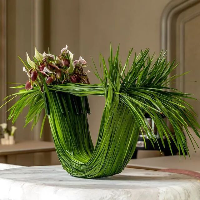 虽然伯格曼没法将这项创意申请专利,但他还是留了一手,毕竟,脑袋里的东西是拿不去的。一个人的作品里藏着他/她读过的书,走过的路,经历过的生活,特定的审美偏好。来自童话王国的伯格曼,花艺作品里既有欧式花艺的热情大胆,强烈的视觉冲击力,也融合了日本花道的静、雅、美、真等自然意趣。![]()