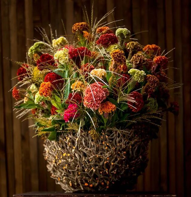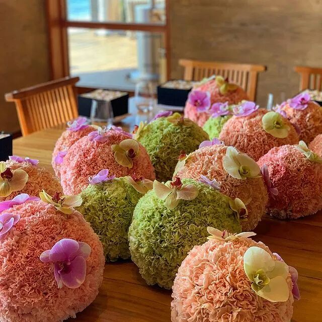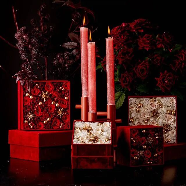 不得不说,伯格曼很懂得因地制宜。他很会根据客户的喜好来调整花艺风格。像是在美国和丹麦出售的一款圣诞花盒,配色浓郁,热情端正,一看就是那个味。而从韩国团队布置的几场婚礼花艺、生日宴花艺来看,轻盈柔软,梦幻而浪漫,是韩国人喜欢的风格没错了。现在伯格曼将更多重心放在花艺培训、展览上。店里的日常事务都交由团队处理,他们很好继承了老板的风格,在颜色、造型这方面也是玩得很出彩。根据四时风物变换,调整店里的装饰风格,作品的主题。应景的秋日装扮