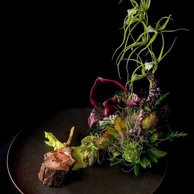 闲下来的伯格曼也会更新一些花艺作品,有时是和日本著名的陶瓷艺术家合作,花艺与陶艺结合起来的作品还是很有韵味的。与酒店合作推出的美食花艺,
