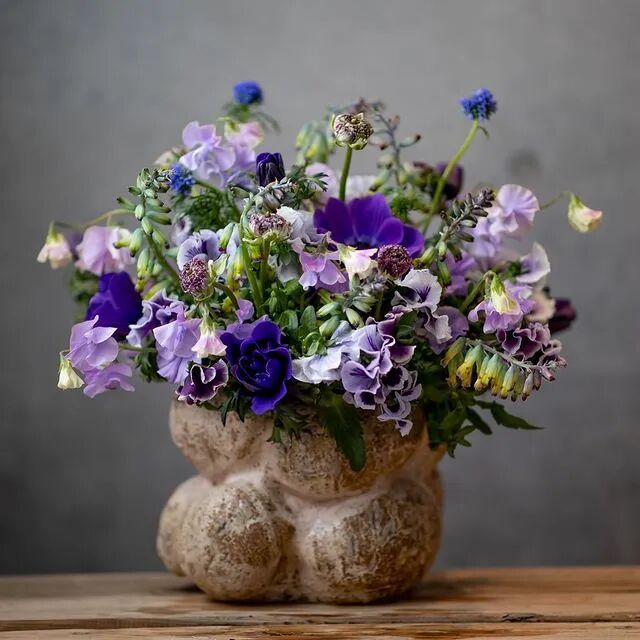 伯格曼有自己的一套插花经,除了一些花店常用的花,他也会用一些少见的花材,比如树木的果实,一些园艺品种,路边的野花野草等等。雪球、灌木荚蒾等组成的花盒。