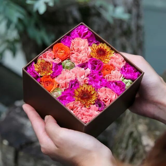 很多男性不好意思拿着花束走来走去。四月谈恋爱初期,男友拿着一束花跨越大半个城市来找我,一路上收获了无数目光。他本来就是个脸皮薄的人,臊得不行。而有了这些方便携带的花盒子,男人们就没这样的顾虑了。![]()